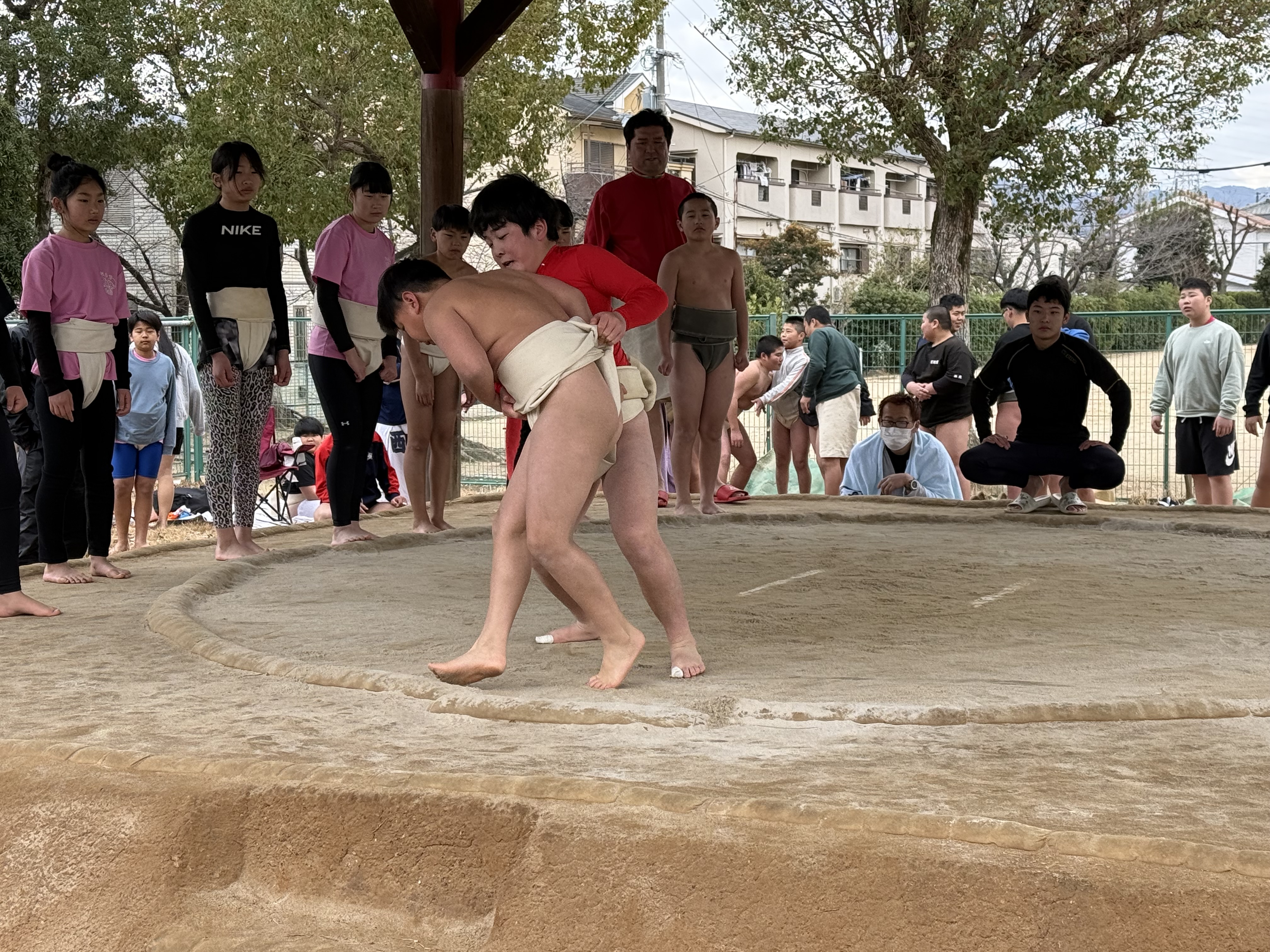 低学年ほど先に稽古を上ることになるのですが、なにしろ会場は大東市相撲連盟さんの本拠地である御供田公園の相撲場です。